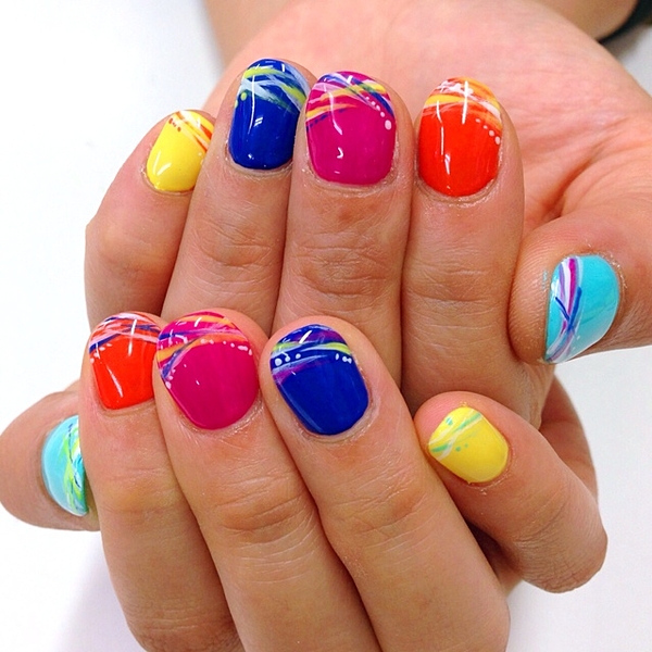 手持ちのネイルカラーを総動員して、爪にあなただけのカラフルなヨーヨーを描いちゃいましょう。