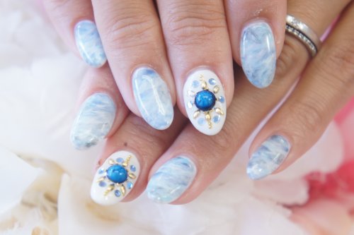 大理石ネイルを応用するとデニムネイルにもなります♪